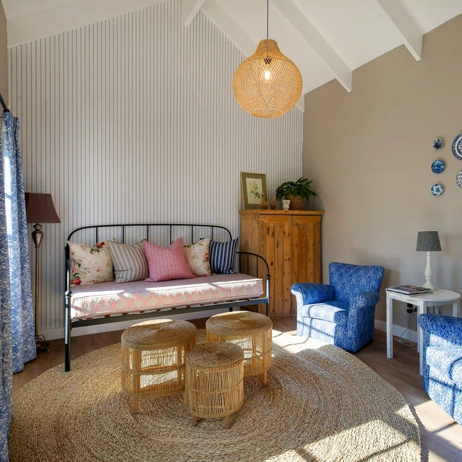 Each of the cottages is thoughtfully styled in a classic countryside aesthetic, offering a warm and inviting interior designed for comfort and calm. The cottages accommodate two guests each and feature an open-plan kitchen and lounge area, as well as a private bathroom fitted with a walk-in shower.
