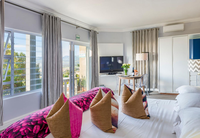 A very conveniently located option with its own courtyard and direct access to the pool deck, bar and breakfast areas. The air conditioned Gazania Suite is furnished with a King-size bed. It has an en-suite bathroom with a bath tub, shower, hand basin and WC. We provide high quality bath and shower products as well as in-room tea and coffee, and mini bar facilities, satellite television, electronic safe, and hair dryer.