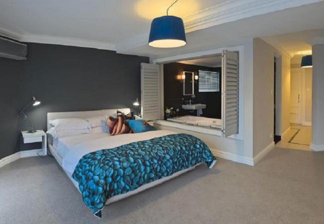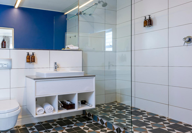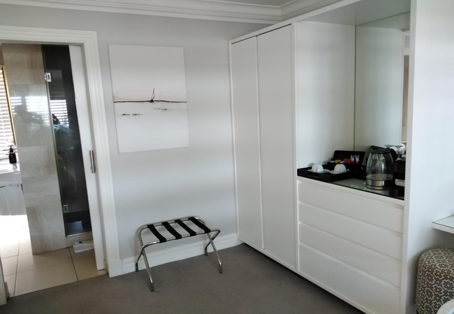 A perfectly secluded spot with ensuite shower and small private deck. Overlooking the magnificent Helderberg mountains range. The air conditioned Strelitzia Suite is furnished with a King-size bed. It has an en-suite bathroom with a shower, hand basin and WC. We provide high quality bath and shower products as well as in-room tea and coffee, and mini bar facilities, satellite television, electronic safe, and hair dryer.