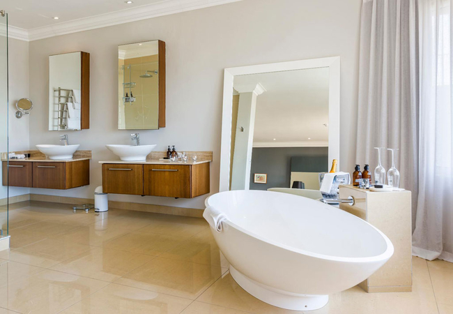 The air conditioned King Protea Suite is furnished with a King-size bed. It has an en-suite bathroom with a shower, hand basin and WC. We provide high quality bath and shower products as well as in-room tea and coffee, and mini bar facilities, satellite television, electronic safe, and hair dryer.