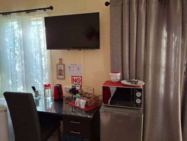 Guests have access to a garden and patio with outdoor seating, and a swimming pool area. Christa's Place has an inverter system in place, so all lights, plugs, TVs and Wi-Fi are fully operational during loadshedding. Parking for one vehicle per room is provided. There is CCTV in the communal areas and parking area.