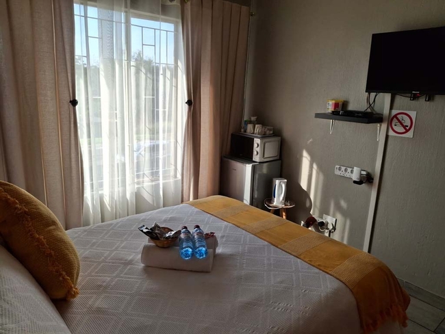 Christa's Place has four individually furnished semi self-catering guest rooms, each with an en-suite bathroom. The rooms are air-conditioned have a TV with satellite channels and Wi-Fi. The rooms are equipped with heat-and-eat facilities including a bar fridge, microwave, and tea and coffee station.