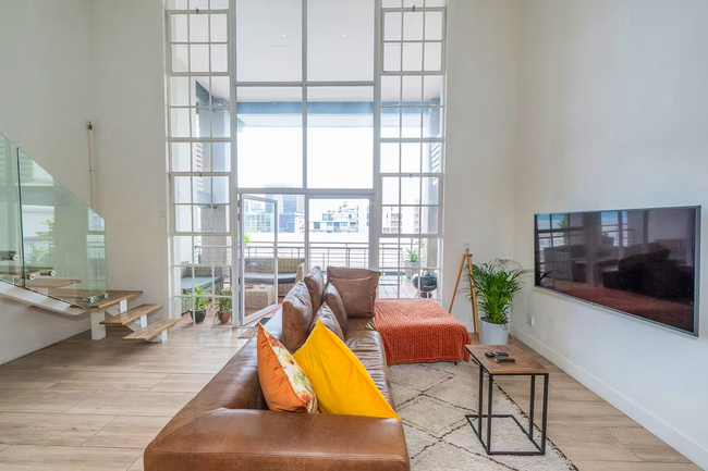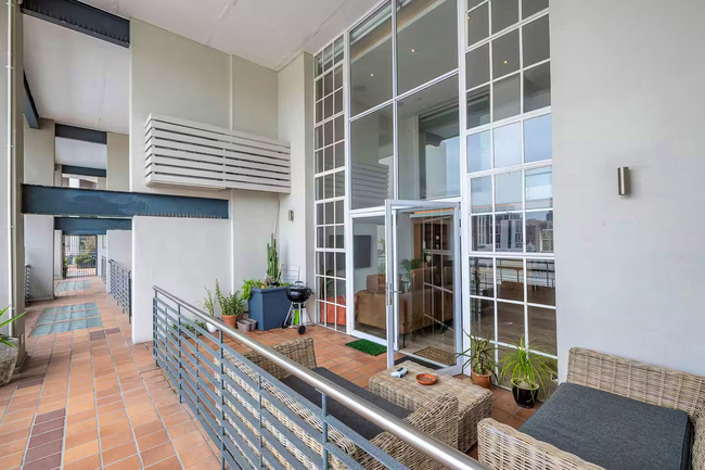 Glass doors open onto a generous patio, complete with a private lounging area and built-in braai facilities—perfect for laid-back afternoons or enjoying sundowners as the city transitions into evening. This outdoor space brings a breath of fresh air to city living, offering a tranquil escape after a busy day exploring.
