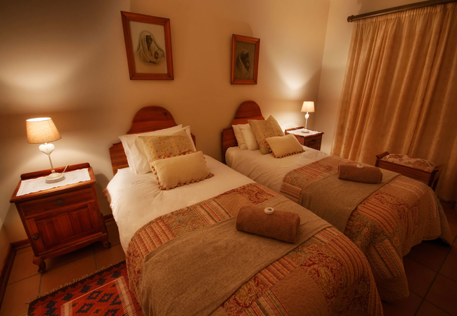 This lovely cottage has two bedrooms and sleeps four guests. The main bedroom boasts a a queen size bed and has an en-suite bathroom with a shower and a bath. The second bedroom has two single beds that can be converted to a king bed. There is a second separate bathroom with a shower. Linen and towels are provided. The living area is cosy and has a flat screen TV with DStv and comfy furniture. There is a small dining area and a modern kitchen equipped with everything you will require during your self catering stay. Outside on the patio you can make use of the braai / barbeque facilities. There is a single garage offering secure parking with access to the enclosed garden area.