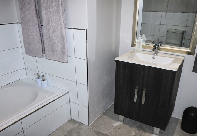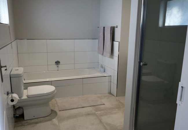 The unit has a fully equipped kitchen and an open plan living and dining area complete with fireplace. This room opens onto a large patio complete with braai facilities. There is a private garden.