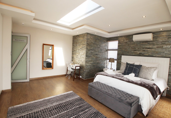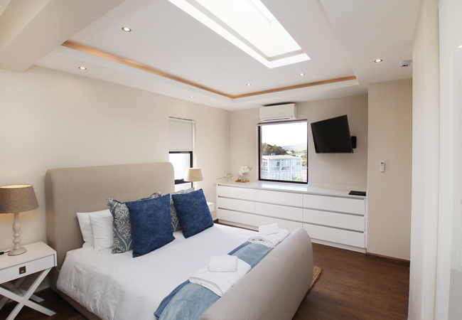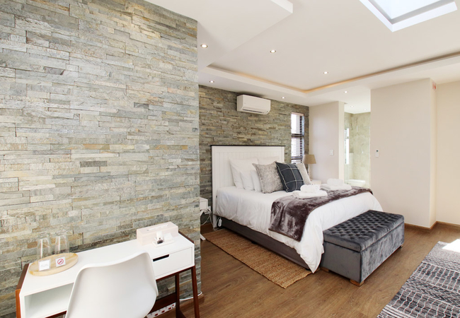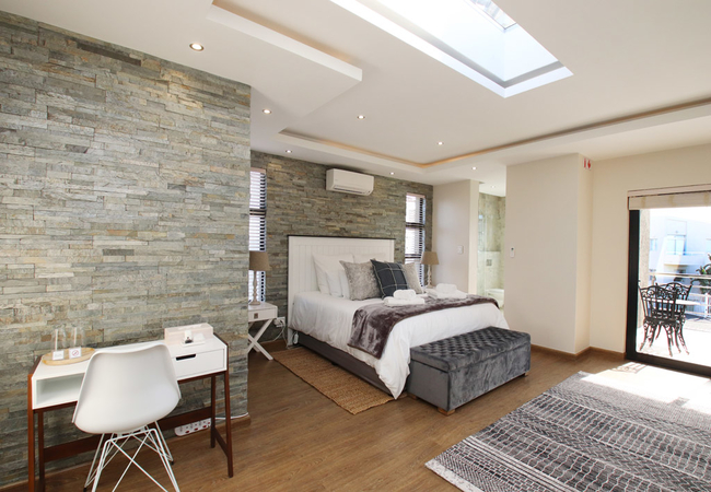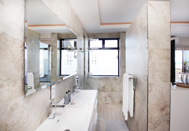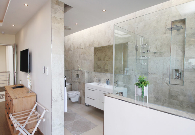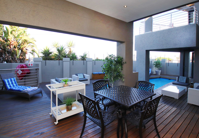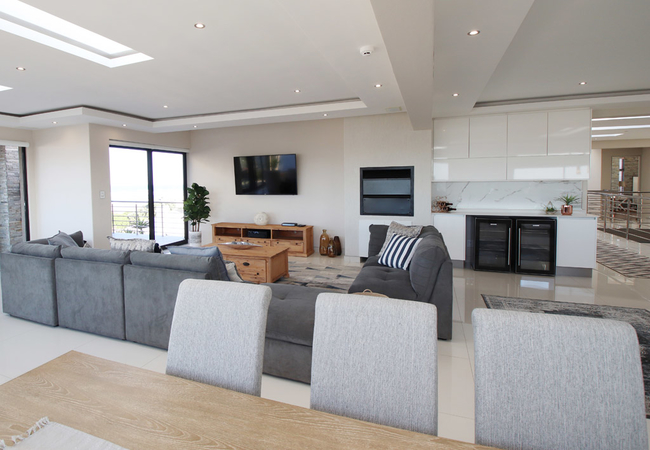 Both floors offer modern lounges and dining facilities.The bottom and upper floor offer spacious and sunny patios as well as built-in braais. The ground floor hosts a pool deck with tranquil seating areas, whilst the upper deck boasts with a splendid view of the magnificent ocean and Table Mountain in the distance. We have an on site spa.