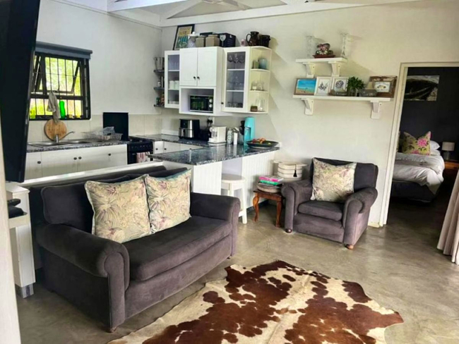The property also offers a 2-bedroom self-catering unit accommodating up to four guests. Each bedroom is furnished with a queen-size bed and en-suite bathroom with a shower. The unit’s fully equipped kitchen includes a 4-plate gas stove, oven, fridge, microwave, and essential cutlery and crockery, making it ideal for preparing meals at your leisure.