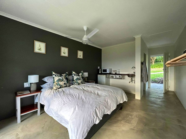 The tastefully designed en-suite Queen room, each furnished with a queen-size bed and a private bathroom equipped with a shower, basin, and toilet. Crisp linen and towels are provided to ensure a comfortable stay. Each room boasts a private kitchenette fitted with a bar fridge, microwave, basic cutlery, crockery, and tea- and coffee-making facilities. Step out onto a private balcony to enjoy stunning views of the Umtamvuna Nature Reserve, whether savoring your morning coffee with the sunrise or unwinding with a sundowner as the day fades.