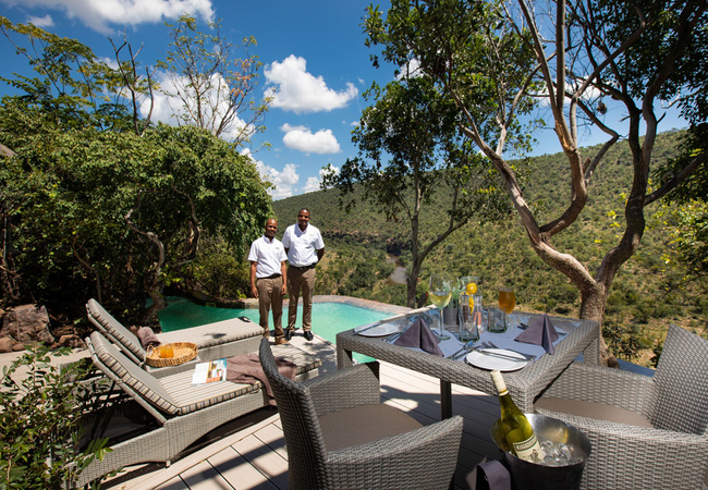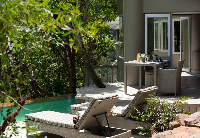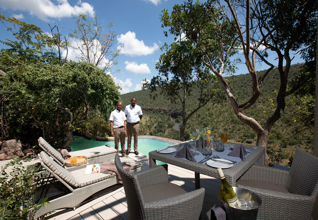 Clifftop Exclusive Safari Lodge offers eight lovely suites each with a private deck and a plunge pool. The suites sleep two guests each and have a bathroom with a shower and a bath as well as an outdoor shower.