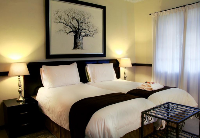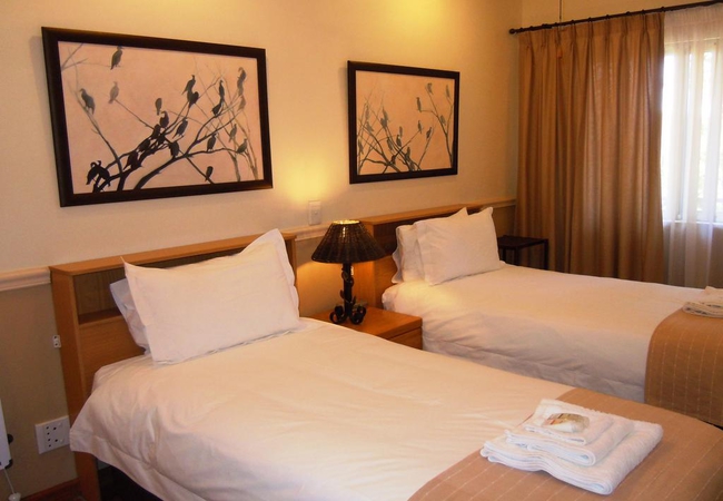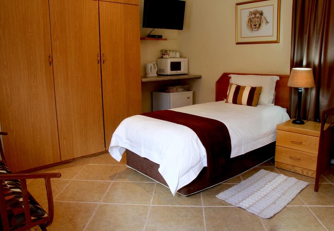 Standard Twin room (two single beds) with en-suite bathroom. All our Guest Rooms have Free Wireless Internet access, Private room entrance, En-suite bathroom with bath and/or shower, TV with DStv hotel bouquet package, Writing desk, Lockable save for valuables, Ceiling fan / AC unit, Electric blankets and heaters, Tea and Coffee making facilities, Small refrigerator and microwave, Hairdryer, clock radio, iron with ironing board.