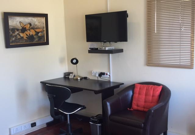 Twin room with self-catering facilities and en-suite bathroom. Our self-catering units are ideal for a single person or couple wishing to stay for longer periods. All self-catering units have fully equipped kitchenettes with two-plate gas cooking top, microwave, refrigerator, kettle, toaster, utensils, cook ware, cutlery and crockery. These units are serviced daily.