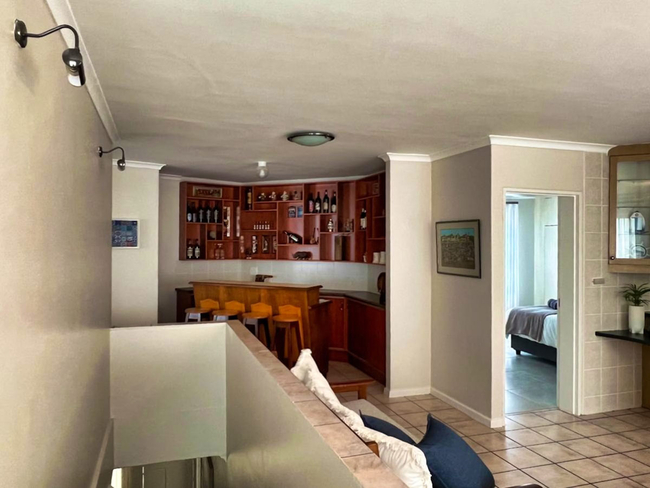 A generously sized balcony invites you to unwind outdoors. With a built-in braai and alfresco dining area, guests can savour delicious meals while enjoying sweeping views of the Atlantic Ocean.