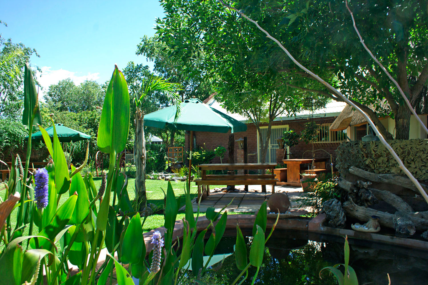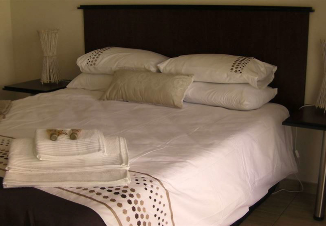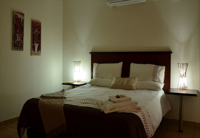 There are three en-suite double rooms each with private entrances. The rooms are furnished with Queen-size beds and the en-suite bathrooms are equiiped with a shower. Other facilities in the rooms include air-conditioning, tea and coffee making facilities, internet connection, hair dryers and TV's with limited DStv access.