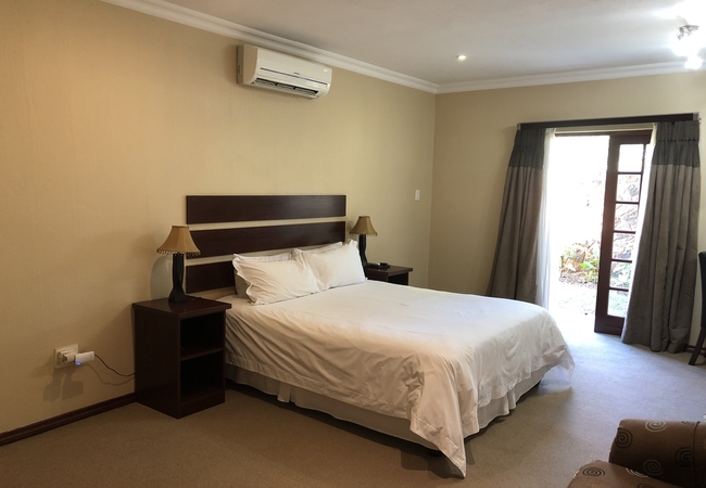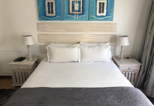 Decorated in soothing shades of white and blue, the room is accented by white wood furnishings. The room comes with a double bed and a complete bathroom with modern design. Guest room amenities include free Wi-Fi, Coffee/Tea facilities, Heaters and Fans and Television with SABC 1,2,3,4, E-TV, M-Net and DSTV. Please note that all Guest Rooms are non-smoking.