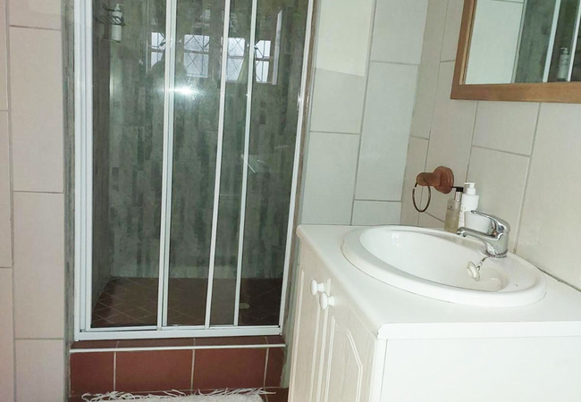 The Olive Room is a smallish room furnished with a King-size or twin beds and a single bed. The en-suite bathroom is fitted with a shower and hand basin. The toilet is separate from the bathroom. Amenities such as a TV with YouTube and Netflix apps, free Wi-Fi access, a bar fridge, a hairdryer, tea- and coffee-making facilities, hot water bottles for winter nights, and other amenities for convenience.