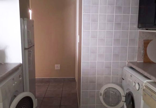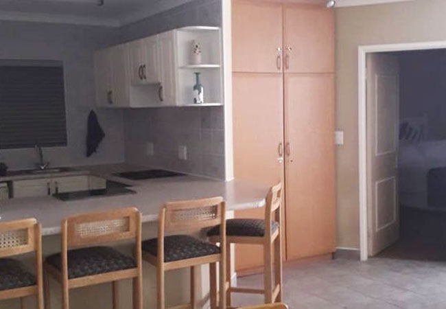 The kitchen is equipped for self-catering with a refrigerator, oven, stove, microwave, cutlery and crockery as well as a dishwasher and washing machine. The living area consists of a dining table and chairs and a cozy lounge with TV. To watch TV you need to bring your own standard DStv decoder.