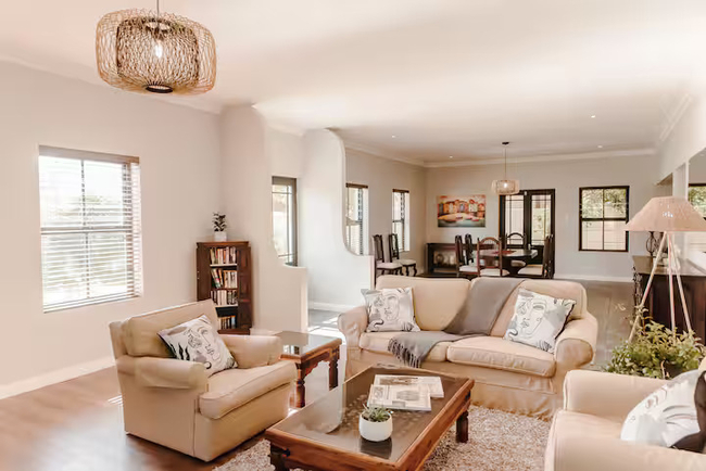 Cosy Cape Dutch near the sea is a stylish 3-bedroom holiday home offering a full kitchen, Wi-Fi, fireplace, garden and city views. Enjoy a private patio with a braai area, free and secure parking and a relaxed coastal setting ideal for families or groups.