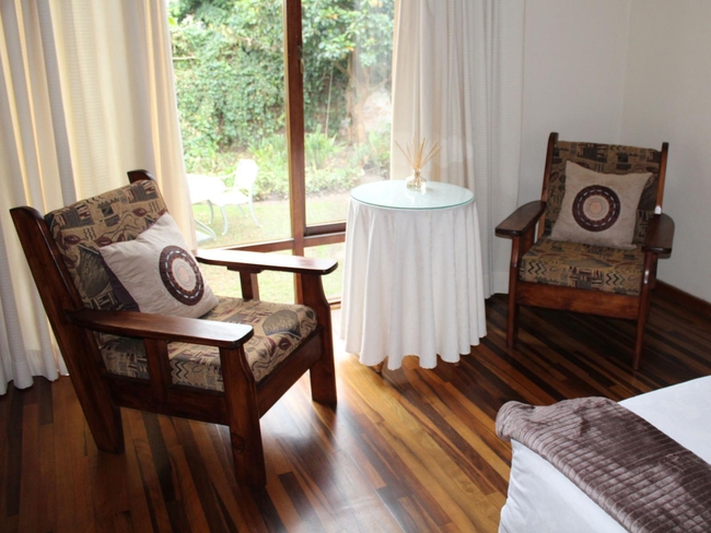 A Non smoking, fully carpeted, north-facing room that is situated up a short flight of steps and has a garden view. It offers our guests a double bed, two comfortable chairs, Flat screen TV, private wall safe, tea/coffee tray,heater, ceiling fan, Wi-Fi access.