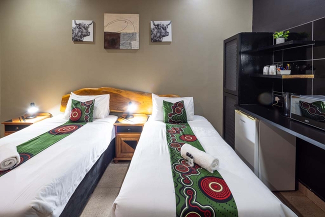 The Double Room is furnished with a double bed that can be converted into two single beds and features a private bathroom fitted with a bath, shower, toilet and basin. Each room is equipped with air-conditioning, a TV with DStv, a work desk, free Wi-Fi access, a bar fridge and other amenities for convenience.