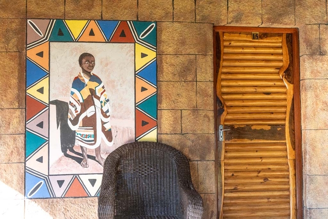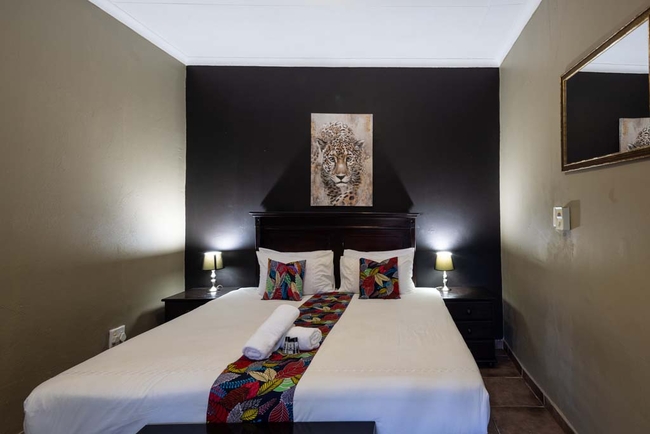 The Africa Room Standard is a spacious room furnished with a King-size bed. The private bathroom is fitted with a shower, toilet and basin. Room facilities include air-conditioning, a TV with DStv, a work desk, free Wi-Fi access, a bar fridge and other amenities for convenience.