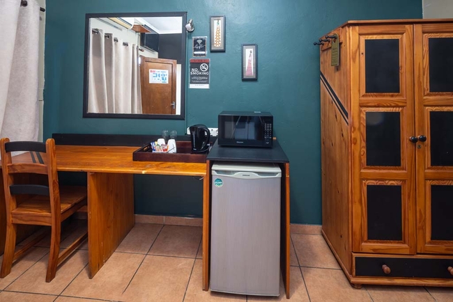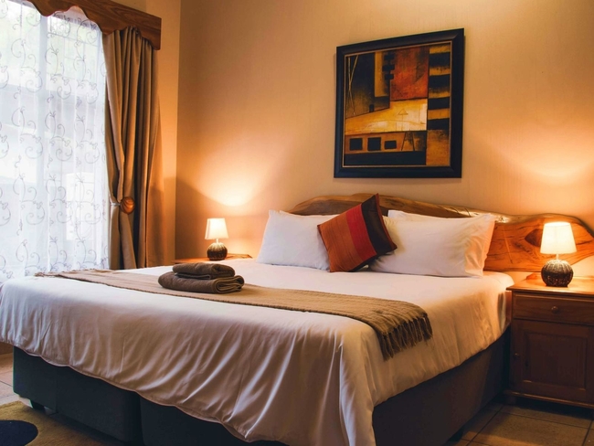 The Standard Double Room is furnished with a double bed and features a private bathroom fitted with a shower, toilet and basin. Room facilities include air-conditioning, a TV with DStv, a work desk, free Wi-Fi access, a bar fridge and other amenities for convenience.