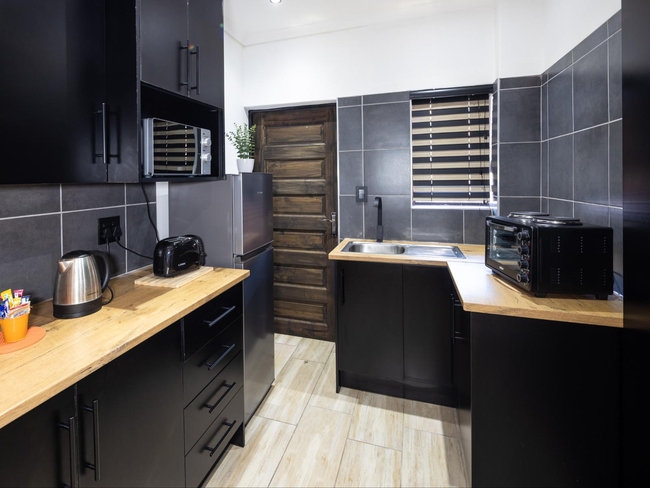 The Self-Catering Deluxe Double Room at Fox Inn Guesthouse in Lephalale offers a spacious and stylish stay with the convenience of a fully equipped kitchen. The room features air conditioning, a desk, safe, TV, and bar fridge, along with coffee and tea-making facilities. Guests also have access to a microwave, refrigerator, stove, toaster, and kitchenette, making it ideal for self-catering stays. Additional comforts include a shower-only bathroom with amenities, daily cleaning service, and access to a garden area for relaxation.