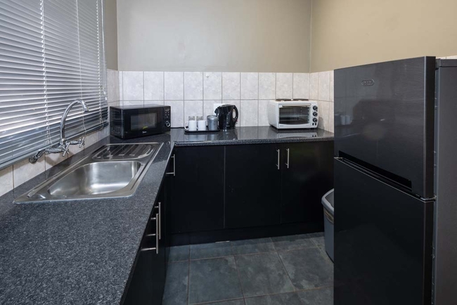 The Self Catering Double Room is furnished with a King-size bed that can be converted into twin beds and has a private bathroom fitted with a bath, shower, toilet and basin. This room has a kitchenette equipped with a bar fridge, two plate stove, microwave and kettle. Room facilities include Wi-Fi, air conditioning and DStv.