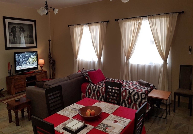 Cottage Lenise offers accommodation on the owner's property in Hornbill's Rest, a tranquil hideaway on the outskirts of Phalaborwa. The cottage is just 12km from the Phalaborwa Gate of the Kruger National Park and is the ideal base for a host of activities. The air conditioned, self catering cottage can accommodate up to four guests and is comprised of one bedroom furnished with two three-quarter beds and an en-suite bathroom with a shower. There is a spacious open plan living area has another two beds as well as a couch and TV. There is a small dining table to enjoy a meal at and a fully equipped kitchen. Cottage Lenise opens up onto a lovely, sheltered patio area which has two outdoor dining areas and braai facilities overlooking the splash pool. Facilities include swimming pool, braai area, secure, undercover parking, free Wi-Fi.
