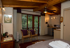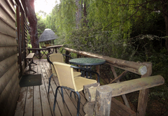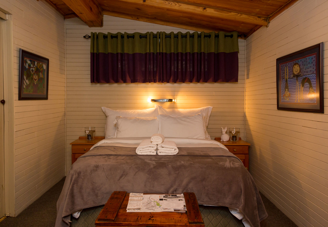 This charming wooden cabin is located near the seasonal stream on the property and accommodates 2 guests. The open-plan unit contains a queen-size bed in the sleeping area while the en-suite bathroom has a shower. The kitchenette is equipped with a stove plate, bar fridge, kettle, toaster, and a frying pan. The unit also features towels, quality linen, a down duvet as well as an electric blanket. A vanity, built-in cupboards, and 2 cane chairs ensure that guests are comfortable while staying at Cottage Pie. The unit opens onto a wooden deck where guests will find a 2-seater round table and it leads to a private area in the garden which has braai facilities and an outdoor dining area. Pet Friendly by prior arrangement, only miniature breeds.