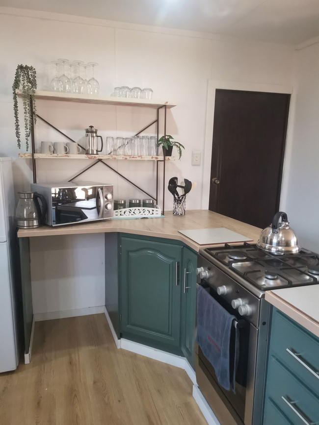This charming timber home comfortably accommodates up to six guests, offering three welcoming bedrooms. Two of the bedrooms are fitted with luxurious queen-sized beds, while the third features two single beds.