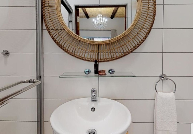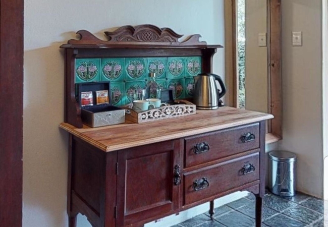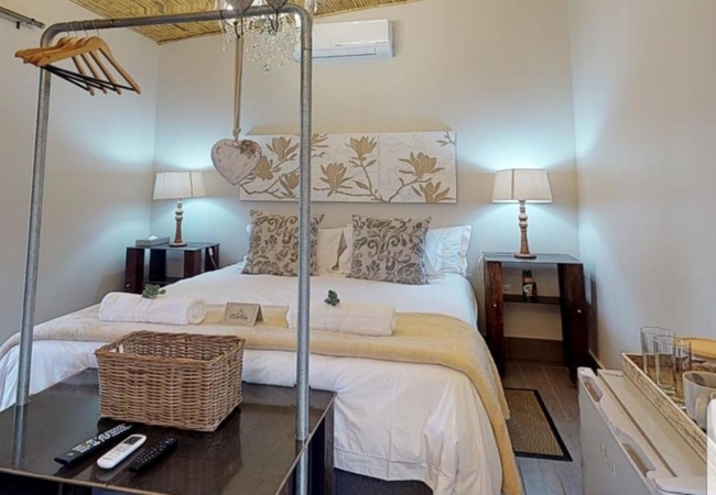 This cottage is furnished with a King-size extra length bed and an en-suite bathroom fitted with a bath, shower, toilet and basin. The cottage has a mini bar fridge, coffee or tea making facilities and air conditioning.