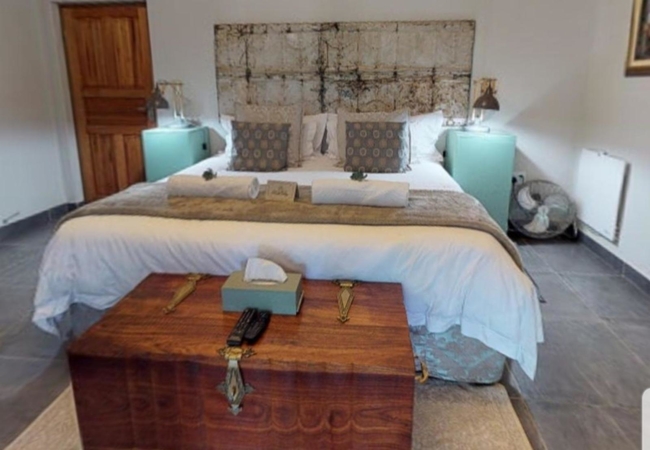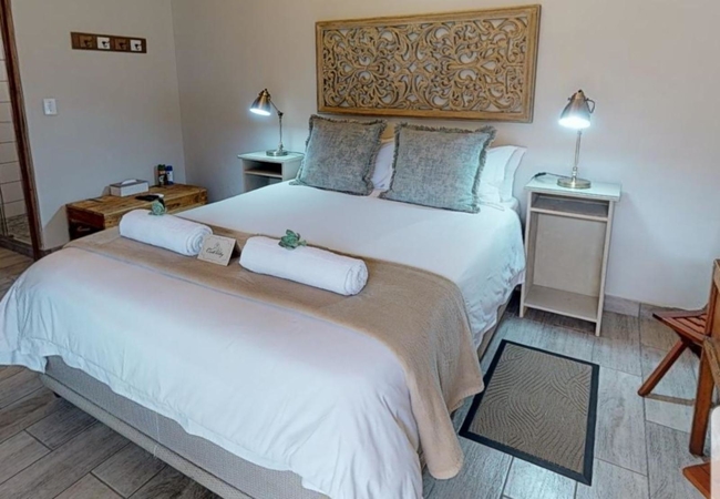 This suite is furnished with a Queen-size. The en-suite bathroom is fitted with a shower, toilet and basin. The room is equipped with a 32" LED TV with SABC channels, e-TV and selected DSTV channels, Bar fridge, Air-con, coffee and tea facilities.