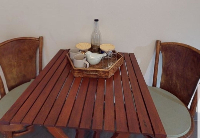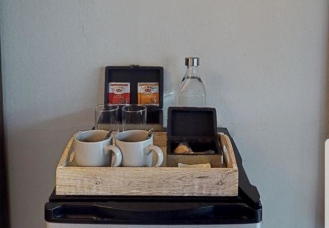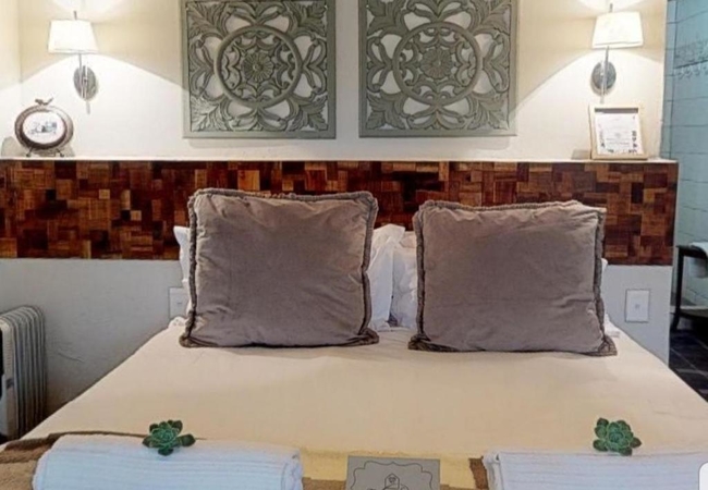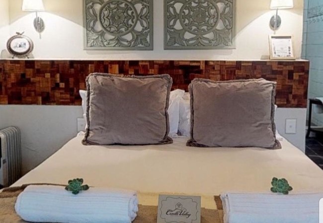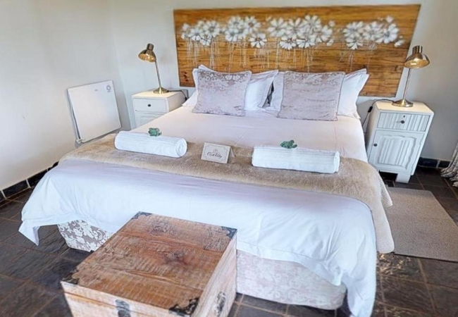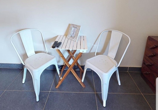 This suite is furnished with a queen-size bed. The en-suite bathroom is fitted with a shower, toilet and basin. The room is equipped with a 32" LED TV with SABC channels, e-TV and selected DSTV channels, Bar fridge, Air-con, coffee and tea facilities.