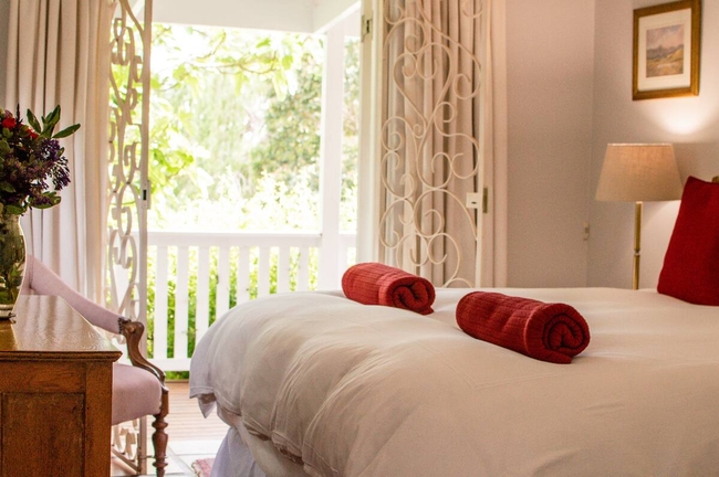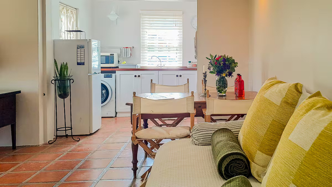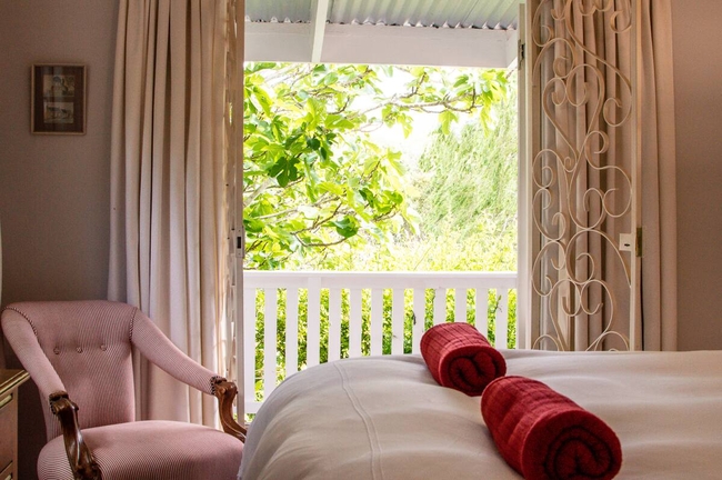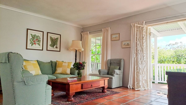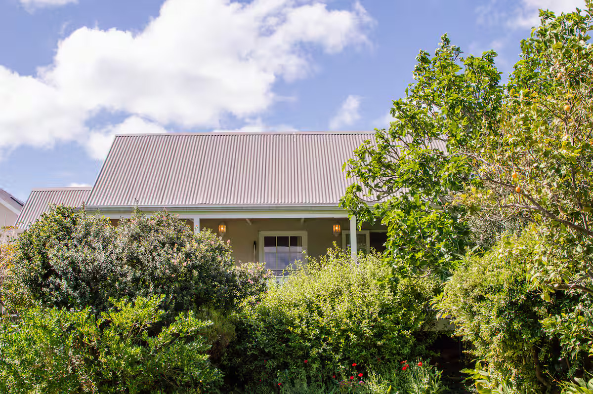Cruise Cottage is a classic garden cottage set within a well established garden filled with mature trees, roses, and abundant greenery. The private outdoor space provides generous room for quiet moments, birdwatching beneath the trees, or unhurried relaxation away from the bustle of daily life. The cottage offers one bedroom furnished with a king size bed, as well as a single daybed situated in the living area. Quality linen and towels are supplied for guests’ comfort, however swimming towels are not provided. The open plan living and dining area is comfortably appointed and designed for relaxed living. French doors open onto a covered wooden deck with outdoor furniture, allowing guests to enjoy peaceful garden views. A television with an Android box is available for entertainment. The kitchen is well equipped and features a gas stove, a spacious oven, a microwave, and ample refrigerator space, making self catering both convenient and enjoyable. The cottage is situated approximately 600 metres from the river and remains within comfortable walking distance of all village amenities. Secure off street parking is provided for peace of mind.