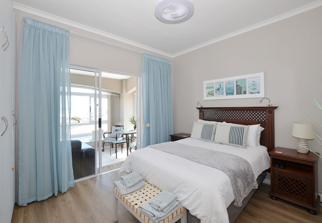 CSkulpie is a tastefully designed self catering apartment sleeping four guests. The apartment has two bedrooms, two 2 bathrooms, an open-plan kitchen and dining area, spacious lounge, charmingly enclosed balcony with built-in braai, and magnificent ocean views.The expansive first bedroom is fitted with an opulent double bed, built-in cupboards, an en-suite bathroom with a shower, and a sliding door allowing you to step right out onto the balcony. The second bedroom is just as spacious, and has a luxuriously comfortable double bed, built-in cupboards, and access to a separate bathroom with a bath. An extra single bed has been discreetly placed in the lounge, for an additional guest or child. All bedding and towels are provided for CSkulpie guests – you will only need to bring your beach towels! The kitchen is fully equipped for all your self-catering requirements, and includes an oven and four-plate stove, microwave, fridge/freezer combo, a washing machine for those sandy beach towels, and a dishwasher, to ensure that you spend your holiday having fun instead of cleaning. Flowing from the open-plan kitchen is the dining area, with an intimate six-seater dining table for those relaxed holiday meals, and an artfully decorated lounge, with enticing leather couches that invite you to sit and unwind. The lounge also has a flat-screen TV, with a full DStv Premium / satellite package. The apartment has free Wi-Fi throughout, and there is secure private parking available on the premises. (Garage with pre-arrangement).