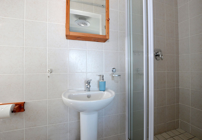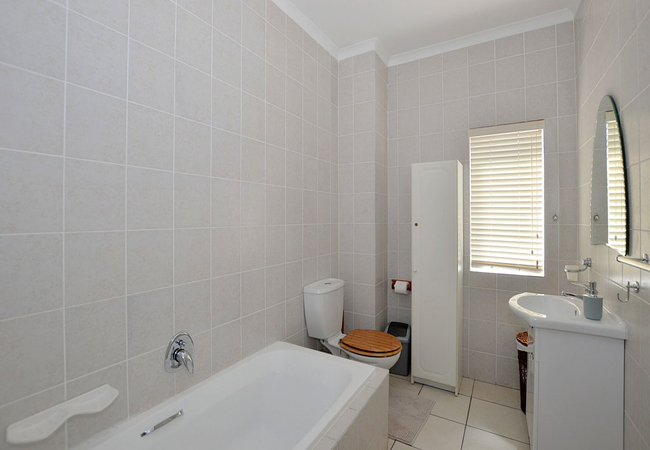 The second bedroom is just as spacious, and has a luxuriously comfortable double bed, built-in cupboards, and access to a separate bathroom with a bath (shower in the bath). An extra single bed has been discreetly placed in the lounge, for an additional guest or child. All bedding and towels are provided for CSkulpie guests – you will only need to bring your beach towels!