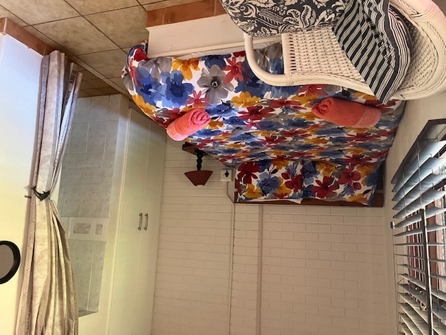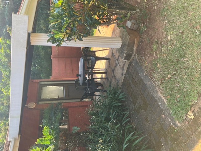 Garden Unit Two is approximately 50 m from the main house and shared swimming pool area. The unit is furnished with a double bed, an en-suite bathroom that is fitted with a shower, and a kitchenette. It shares a verandah with the other garden units and has an outside braai area. The room is approximately 25 sqm. The garden area is fenced and vehicles are parked about 20 m away. Cleaning can be done on request.