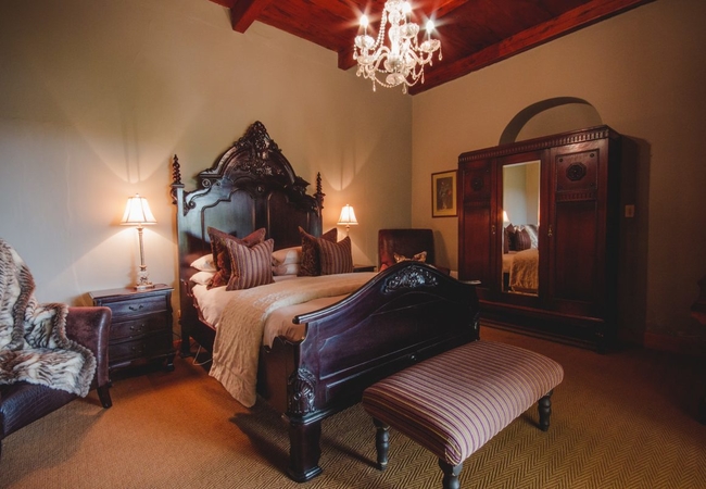 Accommodation consists of six elegantly furnished en-suite and very spacious bedrooms with their own private entrances. These stylish rooms all have colonial charm and themes range from traditional African Safari, Cape Colonial to Victorian splendour.