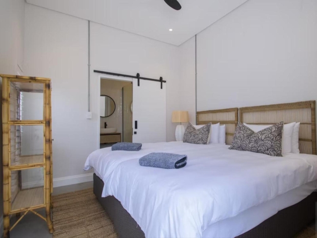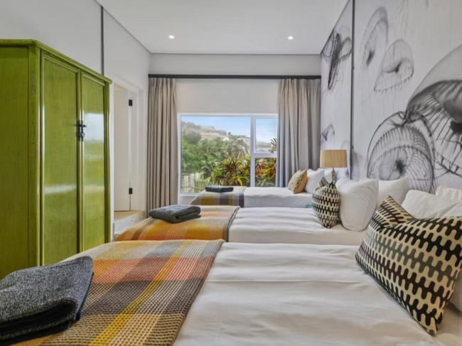Designed with families in mind, the home includes a sea-facing lounge, a generous dining area, and a well-appointed kitchen, all flowing seamlessly into an indoor bar and entertainment space. Bedroom One is the master suite, featuring two three-quarter twin beds, black-out curtains with shutters, a ceiling fan, and an en-suite bathroom with a single basin, a shower, and an open-plan toilet. Bedroom Two contains two three-quarter twin beds, black-out curtains, a ceiling fan, and has access to a full shared family bathroom situated across the hallway. Bedroom Three is a spacious children’s room with four single beds, a ceiling fan, sea views, an en-suite bathroom with a shower, an open-plan toilet, and a single basin. It includes a freestanding cupboard with shelving and hanging space, as well as black-out curtains. Bedroom Four serves as an additional master room with two three-quarter beds positioned together. This sea-facing room has a ceiling fan, black-out curtains with shutters, a dressing table, and an en-suite bathroom with a shower, an open-plan toilet, and a single basin. Bedroom Five, located separately from the main house, offers two three-quarter beds pushed together, a ceiling fan, window shutters, and an en-suite bathroom with a shower, an open-plan toilet, and a single basin. The kitchen is fully equipped for self-catering, with essential cookware, crockery, cutlery, and basic pots and pans. Appliances include a five-plate gas hob with an electric oven, a microwave, an electric kettle, and a toaster. Additional conveniences comprise a dishwasher, a water filter, a full-sized refrigerator, a full-sized freezer, and a separate laundry room with a washing machine and tumble dryer. The open-plan living area provides uncapped Wi-Fi and a comfortable lounge with a Smart TV offering access to all major apps. There is an entertainment bar with a double bar fridge, an ice machine, and its own Smart TV, along with a dining table that seats twelve guests. From here, sliding doors lead to the outdoor area, which features a gas braai, a charcoal Weber, an eight-seater dining table, a fire pit, and a private fenced garden with panoramic ocean views. The property is secured with advanced safety measures, including external beams, security shutters, and IPSS armed response. An inverter provides uninterrupted power supply during load shedding. While there is no garage access, ample driveway parking is available. The home is not air-conditioned, however ceiling fans are installed throughout.