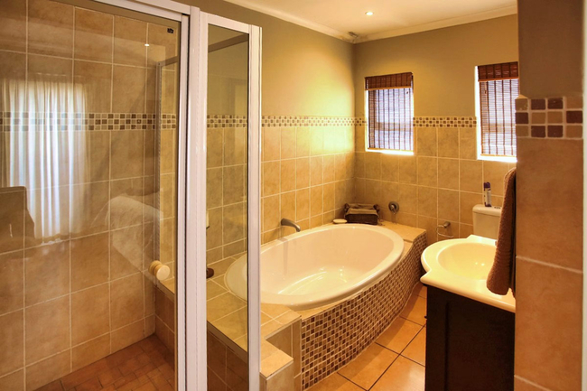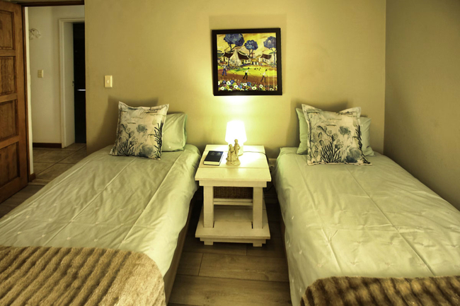 Three of the bedrooms each feature a queen-size bed, with two of them enjoying en-suite bathrooms that include a shower, washbasin, and toilet. The fourth bedroom is furnished with two single beds and makes use of a separate bathroom, also fitted with a shower, washbasin, and toilet. Fresh linen and towels are provided for guests’ comfort.