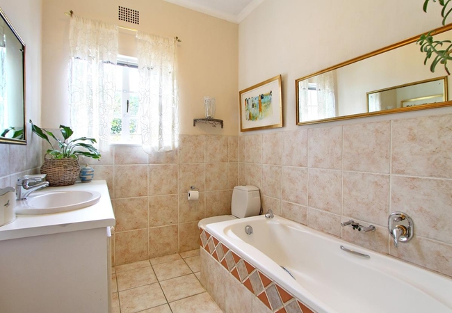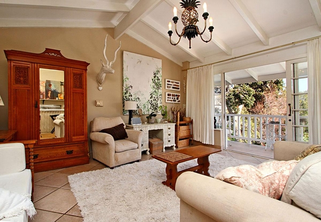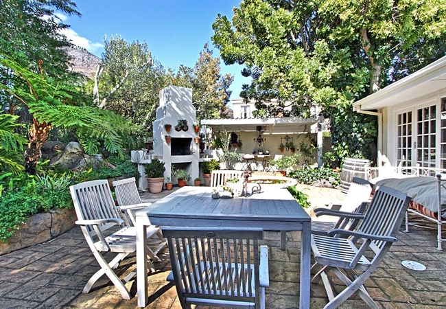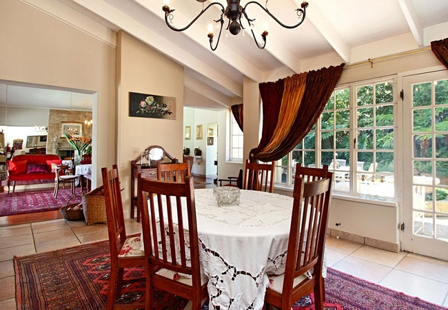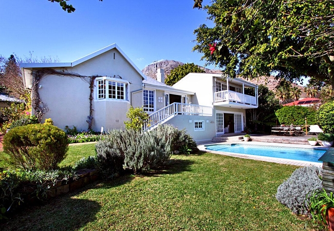 Darling Villa is a spacious and stylish four bedroom villa with excellent sea and mountain views and a large private garden with pool. Along with views of the mountain and sea, the villa is ideally positioned in the upmarket Scott Estate in Hout Bay and is a five minute walk from the beach and seaside restaurants. A short two minute walk will lead you to the village, where a variety of restaurants and some shopping is on offer. Darling Villa is a 260-square metre house which accommodates guests in four bedrooms, a lounge with fold-out bed and three bathrooms, of which two are en-suite. The main bedroom has a king-size bed and an en-suite bathroom; the second bedroom has a queen-size bed. Two bedrooms, of which one is a loft room, each have one single bed. Seen as the fifth bedroom or third lounge, two additional guests can be accommodated in this room on a fold-out sleeper couch. There is a central bathroom with bath and hand-held shower. Guests can enjoy sea views from the top lounge, while mountain views are enjoyed from all areas of the House. Elegantly styled with a romantic French colonial influence, the interior boasts an indoor fireplace and twelve seater dining room table. The kitchen is well-equipped with five-burner gas hob, a convectional oven, an array of pots and utensils, and calming garden views. The living rooms has a TV, Hi-Fi and DVD player and opens out onto the patio with outdoor braai area and rustic country seating. Here the saltwater swimming pool allows for hours of fun and refreshment. DStv access is available but please bring your own smart card or pay a nominal fee per day. Air-conditioning is available at an additional rate, but there's always a comfortable cool spot to relax. Facilities: Wheelchair Enabled Laundry Facilities Indoor Fireplace Satellite TV Braai / Barbecue Swimming Pool Wi-Fi Pet Friendly Parking on Premises Please Note: Smoking is not allowed in the bedrooms. The pool has no fence. Baby sitting services are available..