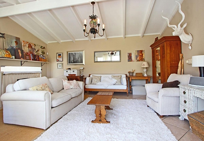 The living rooms has a TV, Hi-Fi and DVD player and opens out onto the patio with outdoor braai area and rustic country seating. Here the saltwater swimming pool allows for hours of fun and refreshment.
