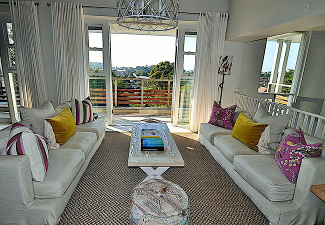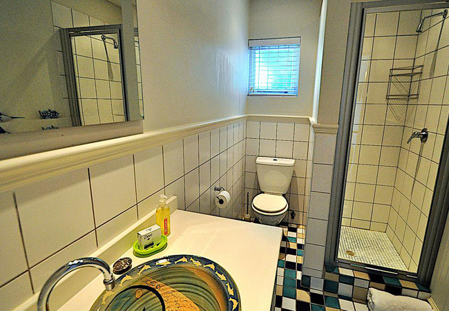 The living area has a bright airy feel. There is lovely lounge, a dining room table and a modern, fully equipped kitchen that contains a toaster, microwave, stove, oven, glassware, tea / coffee making facilities and a fridge / freezer. There is a cozy television room as well with a TV with DStv.