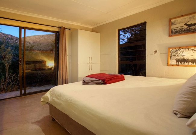 Dassiekrans Four is a holiday chalet in Groendal Wilderness Area with a mountain view. The cabin is furnished with a King-size bed and two single beds. The en-suite bathroom fitted with a shower, toilet and basin.