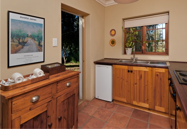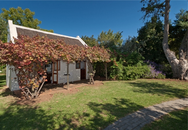 The Garden Cottage offers guests the comfort, space and luxury of country living on De Doornkraal's Aan't Vette Wine Estate. This luxury cottage with an en suite double room (bath and shower) has a private lounge and patio for guests to relax and experience the charm of De Doornkraal and the Aan't Vette Wine Estate. Located in the peaceful garden of the Aan't Vette Wine Estate, guests have access to some of the most exquisite views over the vineyard. Our guests also have the pleasure of total privacy when booking any of the cottages. There is ample secure parking for guests and wireless internet is provided free of charge.