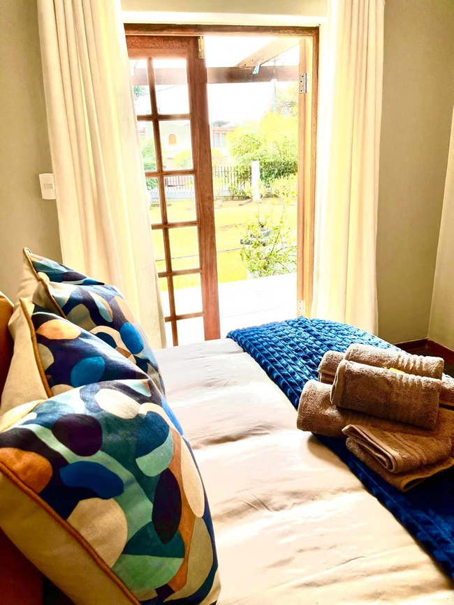 Enjoy a restful stay in this private suite, featuring a plush double-size bed and a modern en-suite bathroom with a shower and hairdryer. The room is equipped with a microwave, bar fridge, coffee and tea-making facilities, and a Smart TV with Netflix for your entertainment. Additional comforts include Wi-Fi, air conditioning, a fan, an electric blanket, a desk, a safe, and hypoallergenic pillows. The suite is non-smoking, offers a tranquil garden view, and comes with daily cleaning service and optional wake-up calls for added convenience.