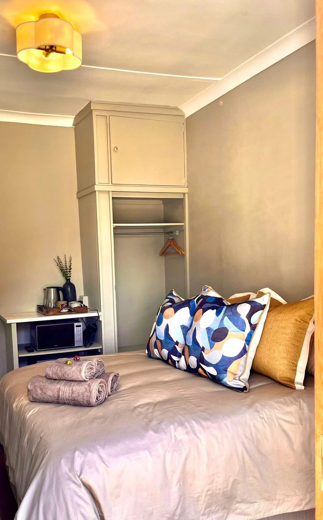 Relax in your private suite, featuring a comfortable queen-size XL bed and a modern en-suite bathroom with a shower and hairdryer. The suite includes a bar fridge, microwave, and coffee and tea-making facilities for your convenience, while a Smart TV with Netflix provides entertainment. Additional amenities include Wi-Fi, air conditioning, a fan, an electric blanket, a desk, a safe, and hypoallergenic pillows. Non-smoking and offering a tranquil garden view, the suite also provides daily cleaning service and optional wake-up calls to ensure a comfortable and convenient stay.