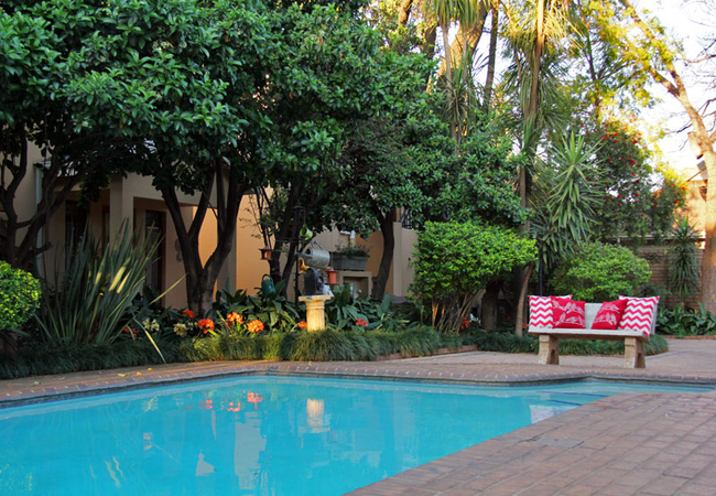 It is a homely guest house with a landscaped garden and sparkling swimming pool. Enjoy a healthy English breakfast every morning in the dining room or on the veranda whilst listening to chatty birds in the garden.