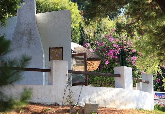 The thatched family cottage offers a large, fully equipped kitchen, a living room and fireplace. There is one King-size bedroom and one twin bedroom, as well as a bathroom with a shower and outside area with a braai.