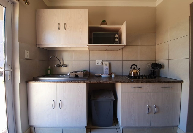 Double Rooms are furnished with a double bed and an en-suite bathroom fitted with a shower, toilet and basin, There is a kitchenette, an open plan living area, air conditioning and a TV with DStv channels.